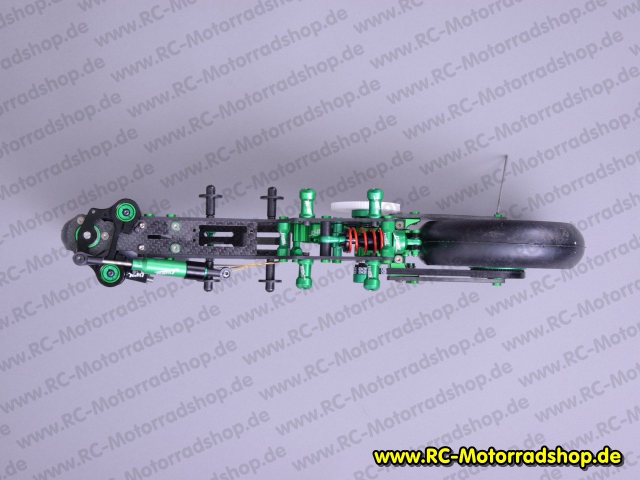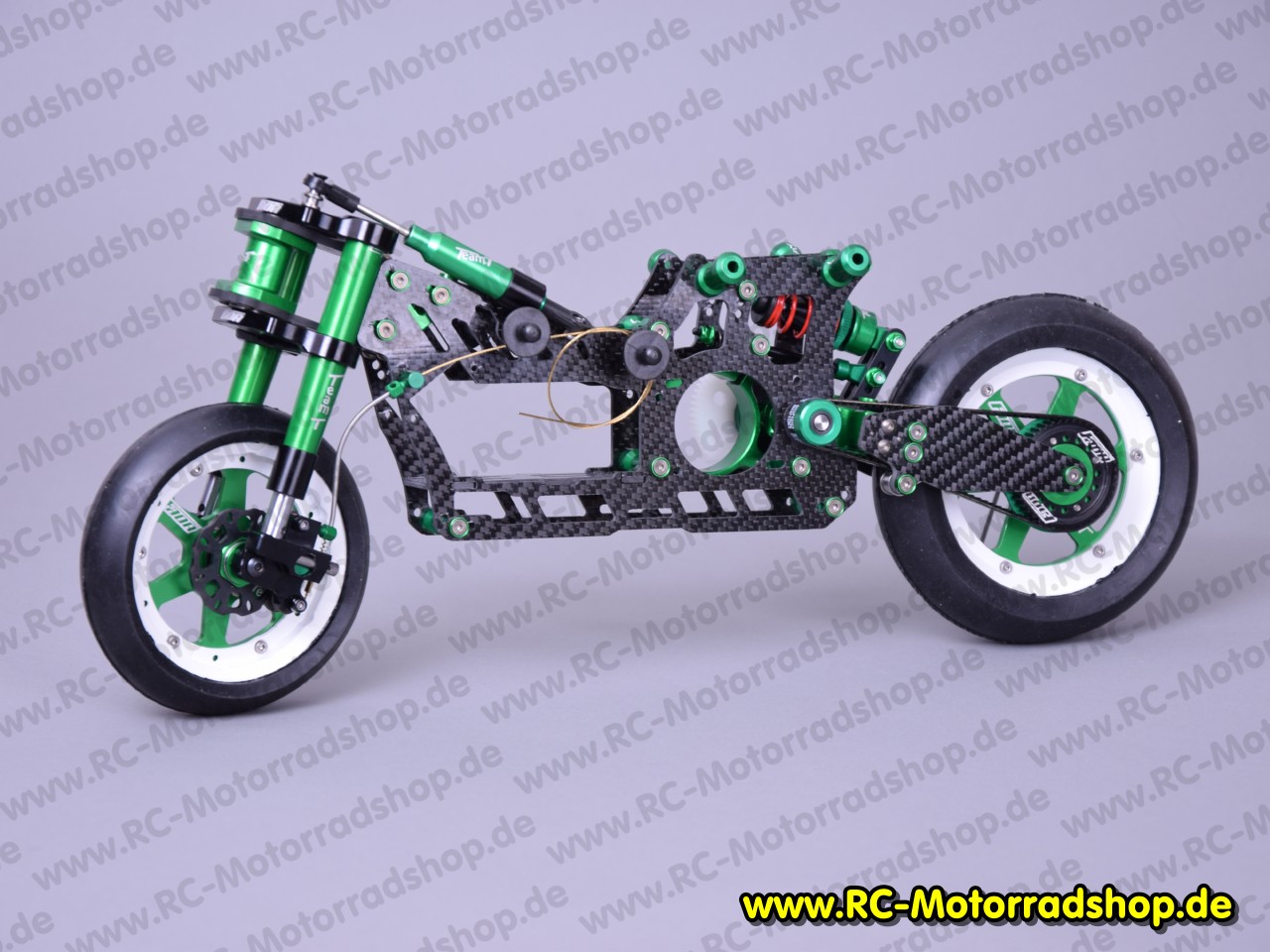 Zum Betrieb des Modells wird eine 2-Kanal-Fernsteuerung mit 2 Servos (35 x 15mm für die Lenkung und ca. 23 x 12mm für die Vorderradbremse - nur für Superbike-Version) benötigt. Ideal ist jedoch eine 3-Kanal Computersteuerung, bei der der 3. Kanal für die mechanische Bremse abhängig vom 2. Kanal für Gas/Bremse (elektronischer Fahrtregler) mit angesteuert werden kann. Die Bremsbalance zwischen vorne und hinten lässt sich so wesentlich einfacher und feiner justieren. Für den Antrieb wird ein elektronischer Fahrtregler sowie ein Elektromotor der 540er Größe benötigt. Natürlich kann das Modell auch mit einem leistungsstarken Brushless-Set betrieben werden. Noch nicht im Baukasten enthalten sind die Räder/Reifen. Das Zubehör für dieses Modell finden Sie weiter unten auf dieser Seite. Selbstverständlich sind alle Teile des Bausatzes einzeln oder in Baugruppen als Ersatzteile erhältlich. Sollten Sie noch weitere Fragen zu dem Modell haben, dann schicken Sie mir bitte eine E-Mail.
